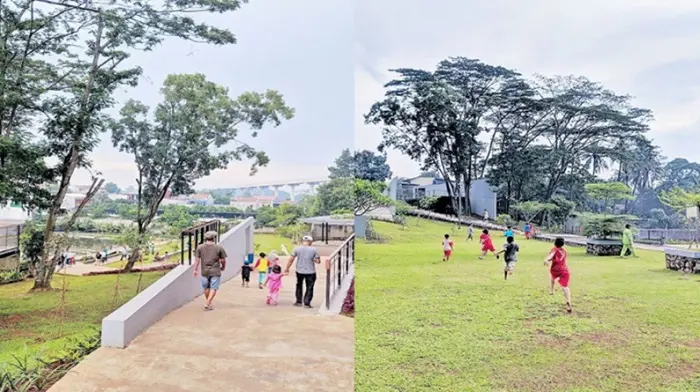 Taman Apung Ciracas memiliki beberapa fasilitas seperti tempat bermain, ruang duduk, gazebo, toilet, kolam ikan, dan area parkir untuk kendaraan.